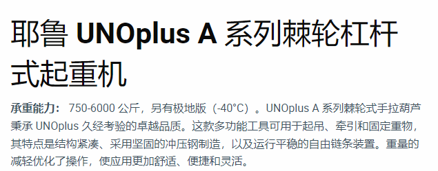 Yale 棘轮杠杆式起重机UNOplus A 系列